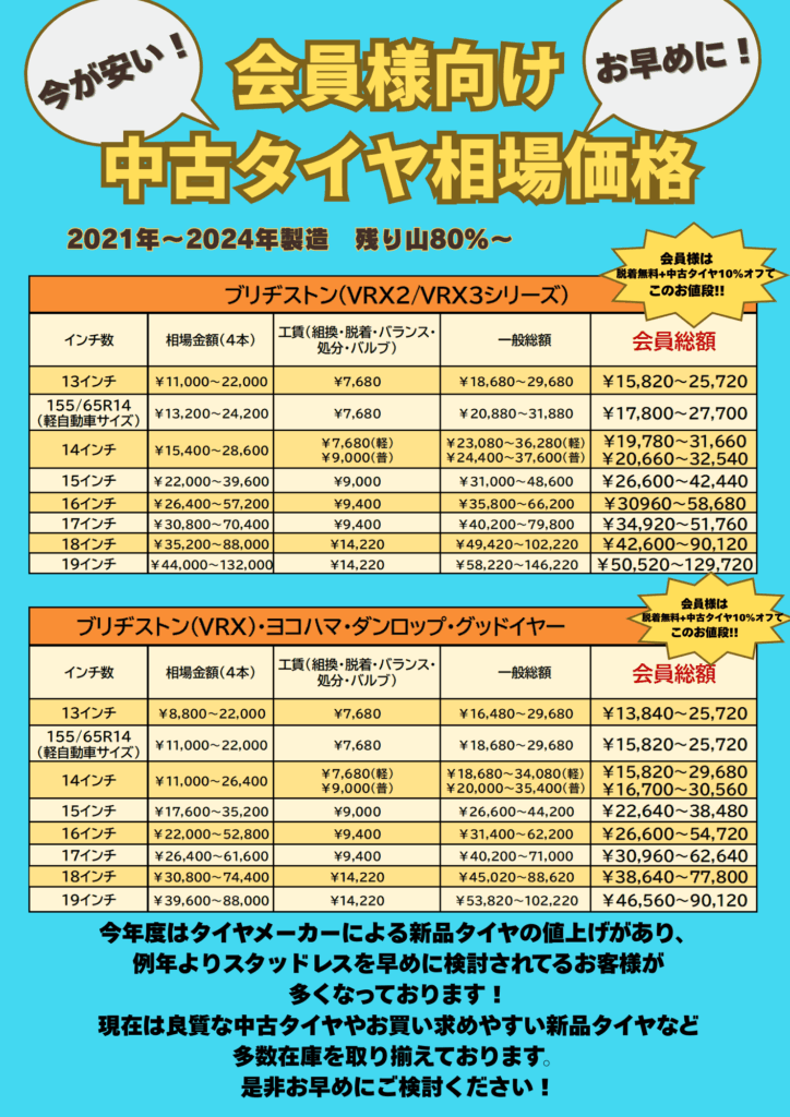 🚗💨会員入会で中古タイヤ全品10%OFF! ❄️