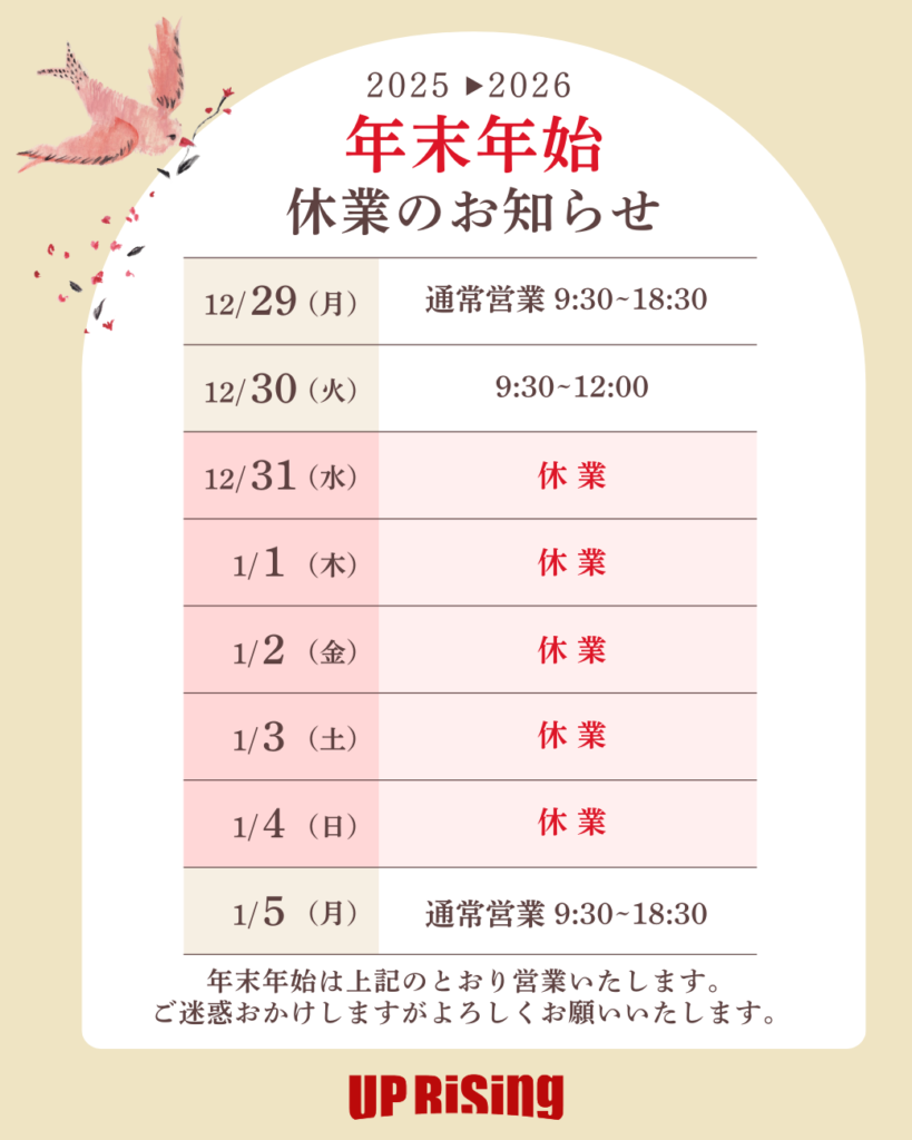 【宇都宮店】2025年-2026年 年末年始休業のお知らせ