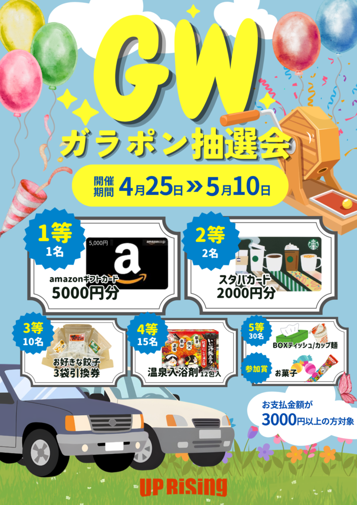 【宇都宮店】ハズレなし‼️GWガラポン抽選会開催のお知らせ‼️